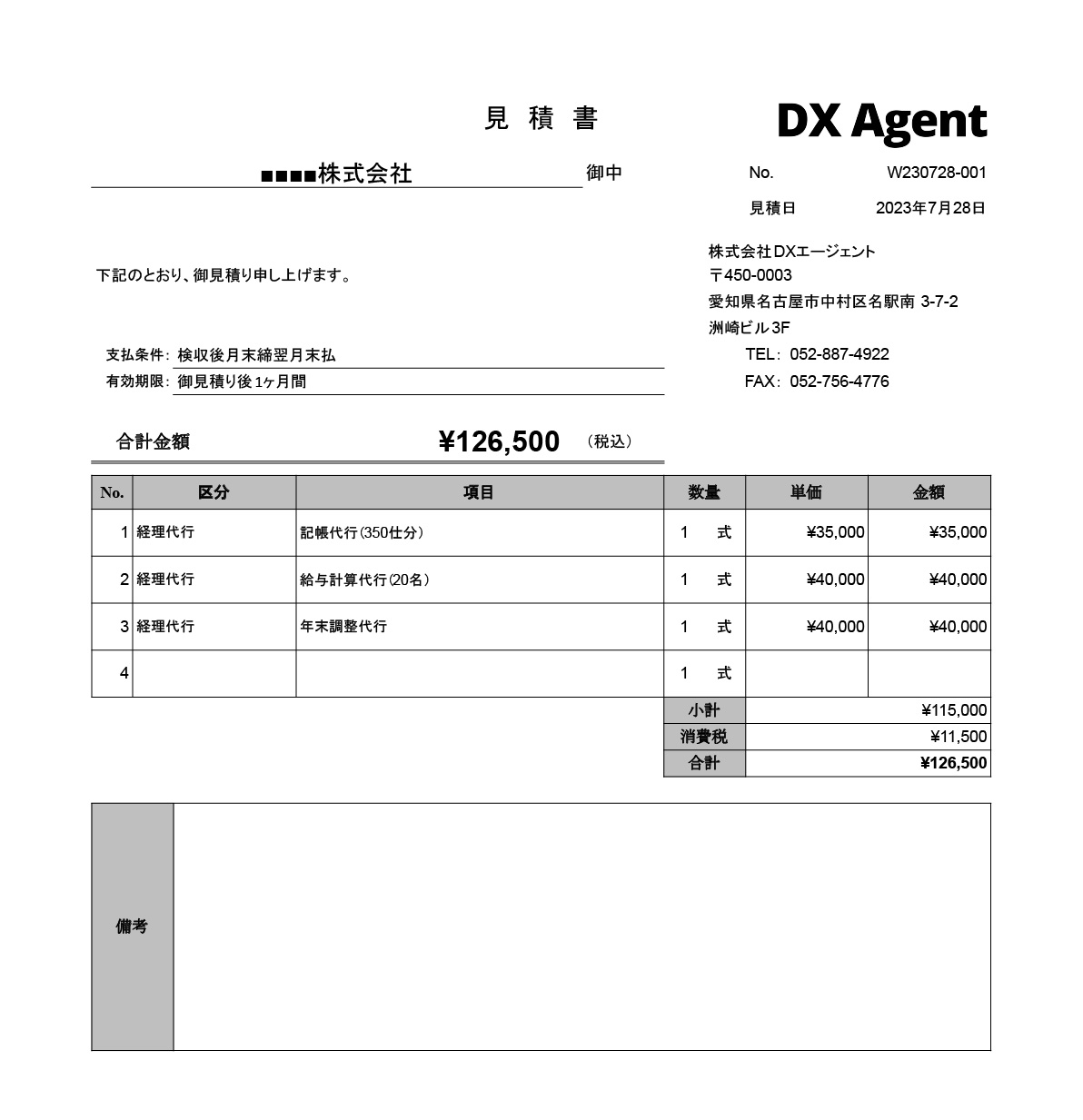 見積額(/月額):